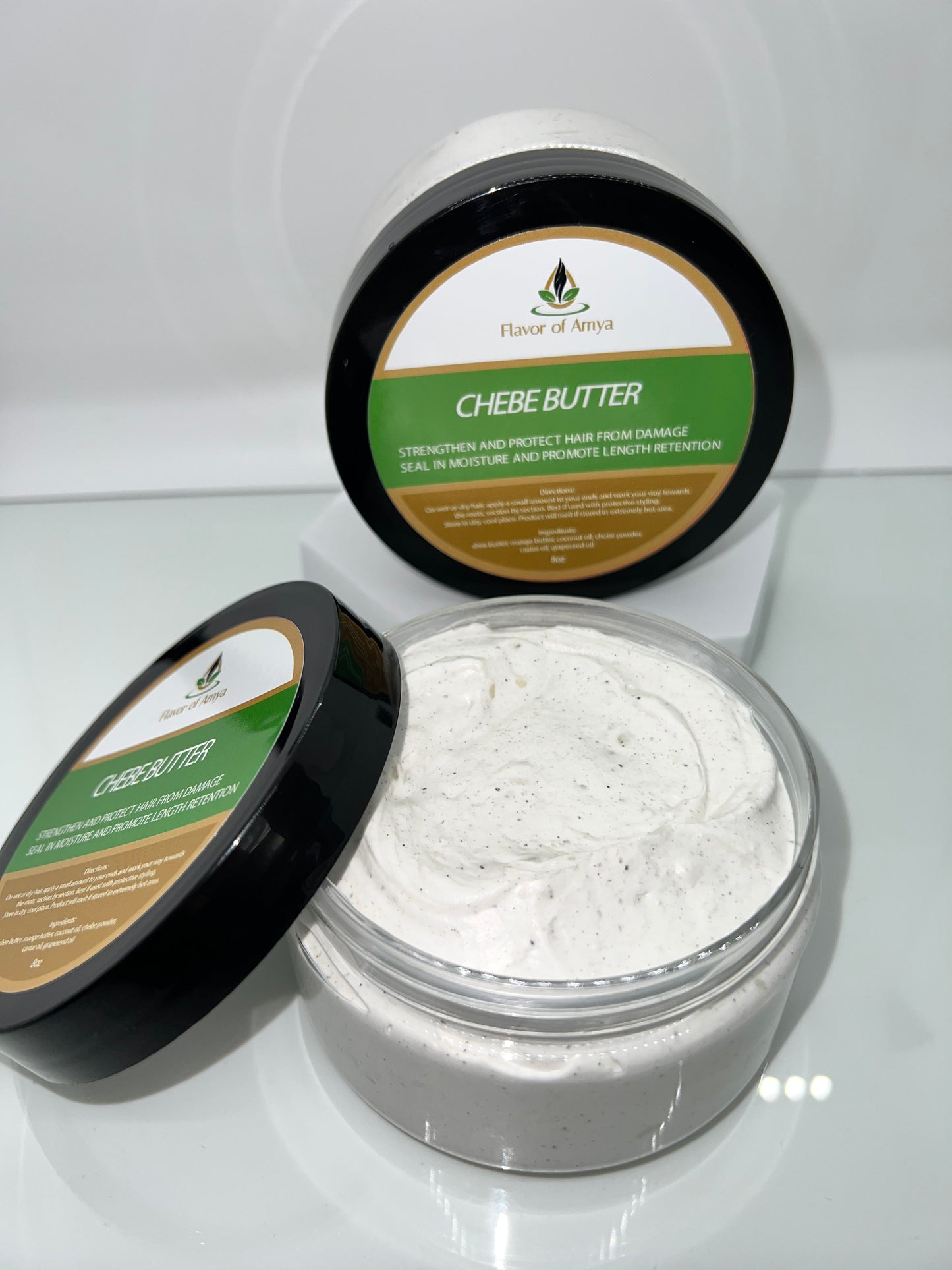 Shea butter, mango butter, coconut oil, chebe powder, grapeseed oil, castor oil